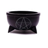 Cuenco quemador de incienso con pies - de esteatita negra pulida - símbolo de Pentaculo - piedras blanca de apoyo a las varitas
